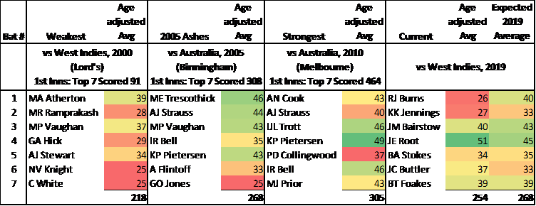 Conclusion: England 2019 are at about the level of the 2005 Ashes side, by having no weak links rather than being packed with world-beating batsmen.