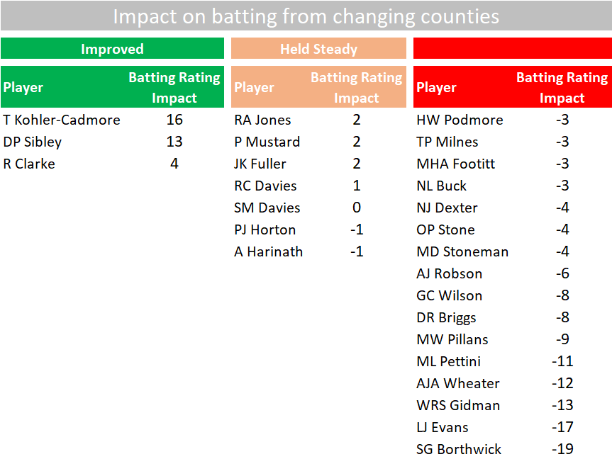 In a recent article for “County Cricket Matters” magazine, I looked at the impact of changing counties on a batsman’s average. You can buy it here.