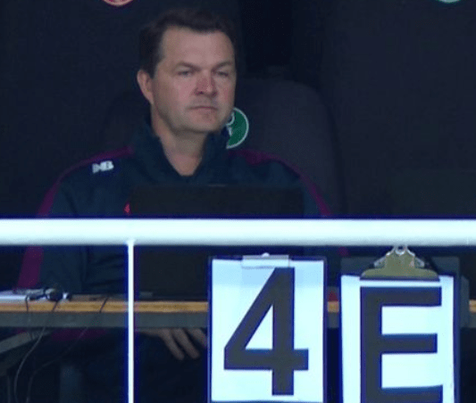 Just imagine those clipboards showing live updates of Expected Balls To Run Out Of Steam, and Optimum Strike Rate. (Screenshot from Sky Sports)