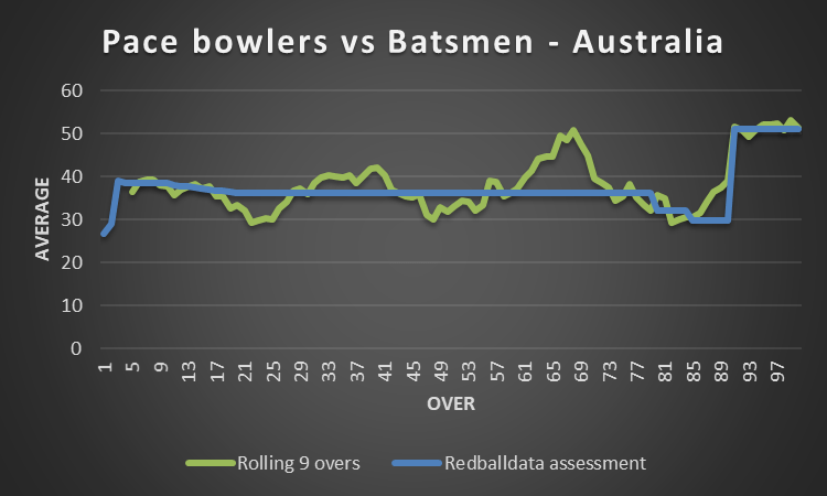 Enigmatic Australia. I couldn’t find a new ball benefit for pace bowlers, other than the first three overs.
