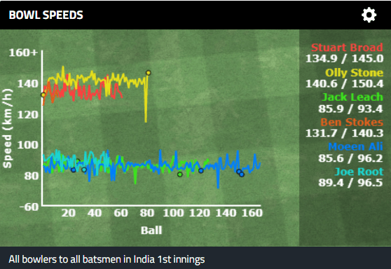 ** Fast bowlers should be about as quick later in the day. Two bits of evidence for this- firstly the academic research implies it (link and link). Secondly the speed data for Jasprit Bumrah and Olly Stone from India v England, 2021.