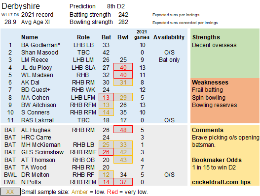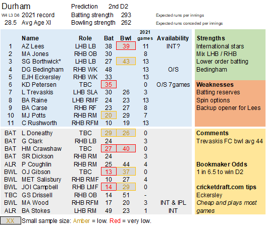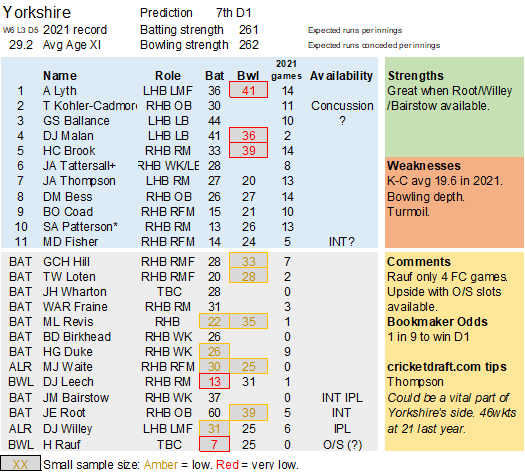 I’ve put together previews for each county. Since I’m better at statistics than writing, I’ll let the charts speak for themselves. The only thing to add is that I did these before the first round of games (honest!)